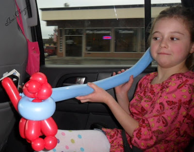 From a Christmas Party that we attended last month. Abby's bee did have a stick thing like Lindsay's Humming Bird, but she popped it after a few minutes.... Mine is the purple doggy and Hannah's is the red one! Your never to old to have a balloon! Ohh and Gergie did have a sword and Belt that we got him, but he popped that after a few seconds too....
